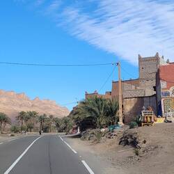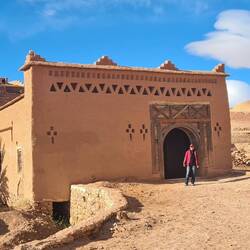 Unser nächstes Ziel ist Aït-Ben-Haddou, ein historisches Lehm-Dorf (Ksar) aus dem 18. Jahrhundert, das als UNESCO-Weltkulturerbe geschützt ist und als Kulisse für viele Filme wie z.B. Gladiator und Game of Thrones diente. Das Dorf liegt am Rande des Hohen Atlas an einer alten Karawanenroute. Die alten Lehmhäuser, verziert mit traditionellen Formen und Mustern sehen wirklich besonders aus. In den Gassen gibt es überall Verkaufsstände. Wir trinken auf einer der Dachterassen Tee und schauen uns eines der alten Häuser von innen an. Der Hausälteste gibt uns hier eine Führung, wenn auch nur auf französisch. Ganz fasziniert von dem Ort und der Umgebung fahren wir weiter nach Quarzazate. Hier befinden sich die Atlas Filmstudios, die flächenmäßig als die größten der Welt gelten. Viele Original-Kulissen bekannter Hollywood-Produktionen sind erhalten geblieben. Auch hier wurden Szenen für Gladiator und Game of Thrones gedreht, für die Mumie, der Medicus, Alexander und etliche weitere. Einheimische bauen hier nicht nur mit an den Kulissen, sondern spielen als Nebendarsteller und auch Stuntman mit. Eine kleine Hofkulisse, die wir uns anschauen, hat 4 Monate Bauzeit benötigt für 400.000€, um gerade mal 5 Minuten im Film vorzukommen. Hinter den Filmstudios ist in der Ferne vor den Gipfeln des Hohen Atlas ein weiteres Filmset zu sehen, zu dem wir mit unserem LKW über eine Piste hinfahren müssen. Rob beeindrucken die Filmkulissen sehr, mich ein wenig mehr die Landschaft drumherum. Interessant ist es aber auf jeden Fall. Die Berggipfel dienten auch schon als Himalaya Ersatz in einem Film über den Dalai Lama. So schließt sich ein wenig der Kreis, wo unser eigentliches Ziel ja der Himalaya war.Read more