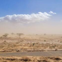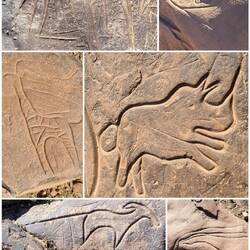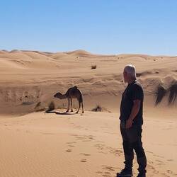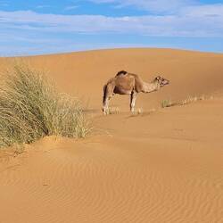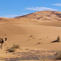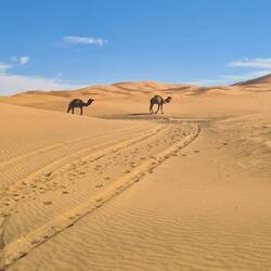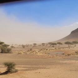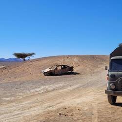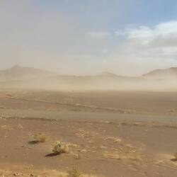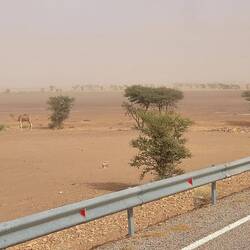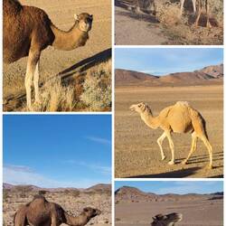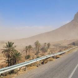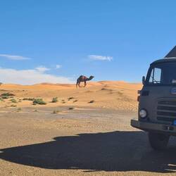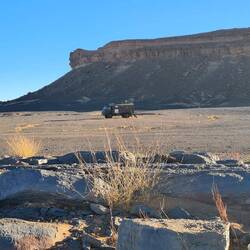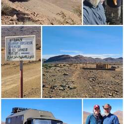 Es geht weiter bis nach Zagora. Die Gebirgsregion zwischen Ouarzazate und Zagora ist der sogenannte Anti-Atlas. Dieser südlichste Teil des Atlasgebirges ist für seine schroffe, felsige Landschaft bekannt. Unsere Strecke führt von Ouarzazate über den Tizi n'Tinififft Pass hinab in das grüne, von Palmen gesäumte Drâa-Tal. Zagora ist eine Oasenstadt, die auch als "Tor zur Sahara" bezeichnet wird. Umso näher wir der Stadt kommen, umso mehr Plastik glänzt in der Sonne in der Weite verstreut. Nicht so, wie man sich eine Oasenstadt vorstellt. Rob will hier in einer unter Reisenden bekannten Werkstatt die Einspritzpumpe reinigen lassen. Allerdings sind wir nicht die einzigen Kunden. Ein Kommen und Gehen und Warten beschreibt es wohl am besten. Wir verbringen eine Nacht in der Stadt und treffen beim Warten vor der Werkstatt noch Reisende aus der Schweiz. Die Nacht war bereits windig und auch tagsüber weht es ordentlich, so dass einem Sand in die Augen weht. Wir setzen unsere Reise fort Richtung Nordost und haben aufgrund der Sandverwehungen teilweise kaum noch Sicht. In der Sandwolke sehen wir links eine Kamelherde und später ein einzelnes Kamel, bevor es nach ein paar Kilometern plötzlich wieder aufklart. Die Nacht verbringen wir in Zouk Tarasine, bevor wir uns die wahrscheinlich ältesten Felsgravuren Marokkos anschauen. In Aït Ouazik sind Zeichnungen von Nashörnern, Elefanten, Antilopen und Straußen zu sehen, aus einer Zeit, als die Sahara noch bewohnbar war. Sie werden auf ein Alter von 8.000 Jahren geschätzt. Der Weg dorthin führt über eine Piste, teilweise durch ein Flussbett, bevor es durch den kleinen Ort selbst geht und uns ein Junge den Weg weist. Der ortsansässige Guide leitet uns in dem riesen Areal zu den einzelnen Steinen. Es sind viel mehr, als wir gedacht haben. Als wir unsere Reise fortsetzen, treffen wir direkt mehrere Kamele, die gemütlich am Straßenrand fressen. Wie schön.Read more