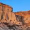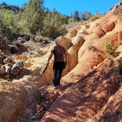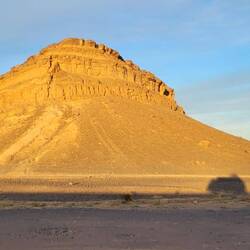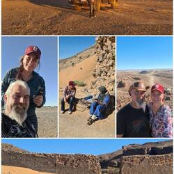 Unser nächstes Ziel ist der Jebel Mudawwar, was übersetzt soviel wie "runder Berg" heißt. Auch bekannt als portugiesisches Gefängnis. Hierbei handelt es sich um eine hufeisenförmige geologische Felsformation. Diese natürliche Erosion wurde im 11. Jahrhundert von der Almoraviden-Dynastie zu einer befestigten Garnison und Karawanserei mit hohen Mauern ausgebaut, um die nahegelegene mittelalterliche Handels- und Karawanenstadt Sijilmasa sowie die wichtigen Goldhandelsrouten aus dem Süden zu schützen. Die Gegend ist zudem reich an Fossilien wie Trilobiten und Ammoniten. Kaum vorstellbar, dass das Gebiet vor Millionen von Jahren ein Meeresboden war. Wir übernachten seitlich von der Öffnung des ungewöhnlichen Berges in totaler Stille. Das hatten wir länger nicht. Diese Ruhe nutzen wir am nächsten Morgen erst einmal zum Haareschneiden. Auch das muss mal wieder sein. Als wir später ins Innere der Felsformation laufen, werden hier gerade noch die Reste eines Filmsets abgebaut. Ein japanischer Kriegsfilm soll hier gedreht worden sein. Wir klettern bis nach oben auf die Felsen und entdecken jede Menge versteinerte Fossilien in und auf den Steinen. An unzähligen Ständen werden diese hier in der Gegend verkauft.