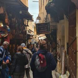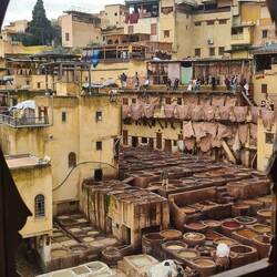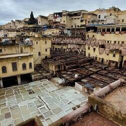 In Fès angekommen geht es zunächst in die Altstadt. Die Gassen erinnern an Essaouira und Marrakesch. Kaum weicht man ab von den Tourigassen, sind die Gerüche teilweise kaum auszuhalten. Ganz anders ist es Gott sei Dank in dem Restaurant, dass wir entdecken. In Fès befinden sich einige der ältesten und größten Gerbereien der Welt, in denen Leder noch heute nach mittelalterlichen Methoden verarbeitet wird. Das wollen wir uns hauptsächlich anschauen. Die größte und bekannteste Anlage ist die Chouara-Gerberei, deren Ursprünge bis ins 11. Jahrhundert zurückreichen. Sie ist berühmt für ihre markanten, bunten Farbbecken. Wir werden auf eine Dachterasse direkt nebenan eingeladen. Hier hat man den besten Blick auf die ganzen Steinbecken. Wir erfahren, dass die Tierhäute (Kuh, Kamel, Schaf, Ziege) 20 Tage in einer Mischung aus Wasser, Kalk und Taubenmist eingeweicht werden, um sie weich zu machen und Haarreste zu entfernen. Anschließend werden sie gewaschen und dann weitere 20 Tage in die jeweiligen Farbbecken gelegt, wo sie jeden Tag von Hand gewendet werden, bevor sie 30 Tage lang zum Trocknen an den Häusern aufgehängt werden. Gefärbt wird nur mit natürlichen Farben wie Safran, Kohle, Indigo, Mohn, Henna oder Zedernholz. Insgesamt arbeiten 420 Mitarbeiter in dem Komplex, der auch Verkaufsläden beinhaltet. Wirklich interessant, den Hinterhof mit den ganzen Becken und dem Leder einmal live zu sehen.Read more
