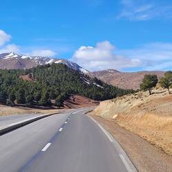 Lange Zeit fahren wir durch das Hochplateau, bis es rauf auf den ersten Pass geht. Ein dunkles Wolkenband vor uns. Mit Regen haben wir Glück, auch der Schnee auf dem Tizi n'Talrhemt Pass bei knapp 1.900 Metern ist geräumt, aber mit jedem Höhenmeter wird es zunehmend nebeliger, so dass wir kaum noch Sicht haben. Was für ein Kontrast zu den letzten Tagen. Auch ich bin hochkonzentriert und einmal mehr froh, dass ich nicht fahren muss. Waghalsige Überholmanöver sowie Fußgänger im dichten Nebel kosten Nerven und so sind wir heilfroh, als wir nach der zweiten Passüberquerung des Col du Zad mit fast 2.200 Metern für einen Zwischenstopp in dem Höhenkurort Azrou ankommen. Am nächsten Tag geht es durch Ifrane. Hier fühlen wir uns auf einmal heimisch, denn alle Häuser sind ganz untypisch für Marokko mit Satteldächern gebaut. Daher wird der Ort auch als "Schweiz Marokkos" bezeichnet.