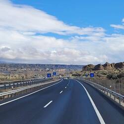 Allerdings liegt hier auch eine militärische Schutzzone, die nicht betreten werden darf. Das bekommen wir bei einem Stopp direkt zu spüren, als das Militär total unerwartet gerade eine Schießübung durchführt und ich richtig zusammen zucke. Die Bardenas Reales ist unser letzter Stopp in Spanien. Von hier geht es nochmal weitere 100km nördlich bis zu einem LKW Parkplatz bei Olave, bevor wir dann ganz im Norden nach Frankreich rüberfahren.Read more