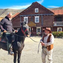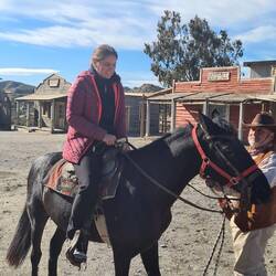 Drei Tage nur im Fahrzeug haben uns dann aber auch gereicht. Wir schauen anhand der interaktiven Straßenkarte des Landes, wo Überflutungen und Sperrungen sind und fahren von Loja die A92 weiter Richtung Almeria, vorbei am Nationalpark Sierra Nevada bis zur spanischen Wüste Tabernas. Hier machen wir Halt an einer weiteren Filmkulisse namens Western Leone. Es ist ordentlich windig, aber zumindest scheint hier endlich die Sonne. Die Anlage wurde Ende der 1960er Jahre als Kulisse für den Klassiker „Spiel mir das Lied vom Tod“ gebaut und für viele weitere Italo-Western genutzt. Rob fühlt sich sofort in seine Kindheit zurückversetzt. Ich mag die Westernatmosphäre mit den tollen Gebäuden aus Holz und die sagenhafte Landschaft. Mit ein paar anderen Wohnmobilen können wir direkt davor übernachten. Am nächsten Morgen läuft in der Westernstadt Filmmusik und es stehen Pferde an den Futtertrögen. Samstags scheint hier doch noch ein wenig mehr geboten, als nur ein Freigetränk im Saloon. Ich habe schon länger den Wunsch im Kopf, mich mal auf ein Pferd zu trauen. Also frage ich nach, ob man als Anfänger geführt eine kleine Runde reiten könne. Lange Zeit hatte ich Angst vor Pferden. Rob interessiert das erst nicht, er lässt sich dann aber überreden, als er hört, dass es geht. Wir haben zwar nur ein paar Minuten auf dem Pferd gesessen und uns gegenseitig rumgeführt, aber für uns war das schon spannend genug. Und dann noch bei der Kulisse. Wir erkunden an dem Tag noch einen Filmspot von Indianer Jones irgendwo im Nirgendwo und übernachten bei ordentlich Windböen nur ein Stückchen weiter mit tollem Ausblick in die Landschaft.Read more