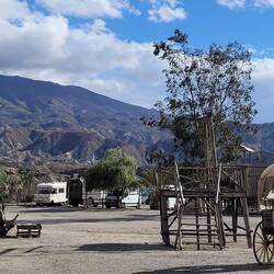 Wir bleiben zunächst in der einzig „echten“ Wüste auf dem europäischen Festland. Die außergewöhnliche Landschaft der Wüste Tabernas mit all den zerklüfteten Hügeln und tiefen Erosionsrinnen (Canyons) ähnelt dem amerikanischen Westen, weshalb sie wohl als Drehort für so viele Klassiker diente. So ist Fort Bravo, auch Texas Hollywood genannt, eine weitere Kulisse, die wir uns anschauen. Die Anlage ist größer und wird noch aktiv mit Shows betrieben, auch wenn diese natürlich nur auf spanisch stattfinden. Hier gibt es einen offiziellen Campingplatz auf der Rückseite, so dass wir die Zeit auf dem Gelände und in der Umgebung ausnutzen.