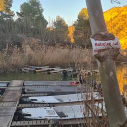 Wir fahren von Valencia aus zunächst die Küste entlang. Unser Ziel ist ein Parkplatz in der Nähe der Ebro Mündung. Dieser ist jedoch so dermaßen voll mit Wohnmobilen, dass wir wieder kehrt machen. Da haben wir erstmal genug von, daher geht es direkt weitere 100km landeinwärts durch eine hügelige Landschaft und einige spanische Dörfer. Wir folgen dem Lauf des Ebro und wollen nun zu einem Camp in der Nähe des Stausees. Es ist das Welscamp Mataraña in Fayón, dass von zwei Deutschen, Helmut und Andrea, geführt wird. Also eigentlich ein Angelcamp. Dort angekommen sprechen uns direkt einige deutsche Dauercamper an. Auch eine 82-jährige Deutsche, die ihrer Tochter hierhin gefolgt ist und hier jetzt ganz alleine wohnt. Rob überlegt, sich am nächsten Tag ein Angelboot zu leihen, aber leider kommt auch hier erneut starker Wind auf, so dass es keinen Sinn macht. Ich bin noch nicht wieder fit und Rob hat sich mittlerweile auch angesteckt. So kurieren wir uns hier ein wenig aus und bleiben ein paar Tage. Zumindest machen wir einen Spaziergang am Ribarroja-Stausee entlang bis zu einem aus dem Wasser ragenden Kirchturm des eigentlichen alten Dorfes Fayón. Der Ort wurde durch den Bau des Stausees überflutet. Das erinnert uns ein wenig an die überfluteten Orte bei Rumkale in der Türkei. Allerdings ist Fayón vorallem auch für die Schlacht am Ebro im Jahre 1938, der blutigsten Auseinandersetzung des Spanischen Bürgerkriegs, bekannt. Seine strategische Lage am Zusammenfluss von Ebro und Matarraña spielte dabei eine Rolle. Wären die Nazis nicht gewesen, wäre dieser Aufschrei der unterdrückten Landbevölkerung vielleicht anders ausgegangen, aber die Nazi-Deutschen boten damals Unterstützung an und setzten erstmals ihre Luftwaffe ein, als großen Test für den Zweiten Weltkrieg. So endete der Bürgerkrieg hier am Ebro mit vielen Toten. Was für ein tragisches Stück Geschichte an einem so idyllischen Ort. Wir hören vom Platzbesitzer, dass die Einheimischen des heutigen Fayón jedes Jahr ein groß inszeniertes Fest zu Ehren der Toten feiern, in dem sie die Schlacht nachspielen. Heute kommen vorallem Deutsche regelmäßig zum Angeln hierhin. Wie die Zeit alles verändert.Read more