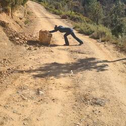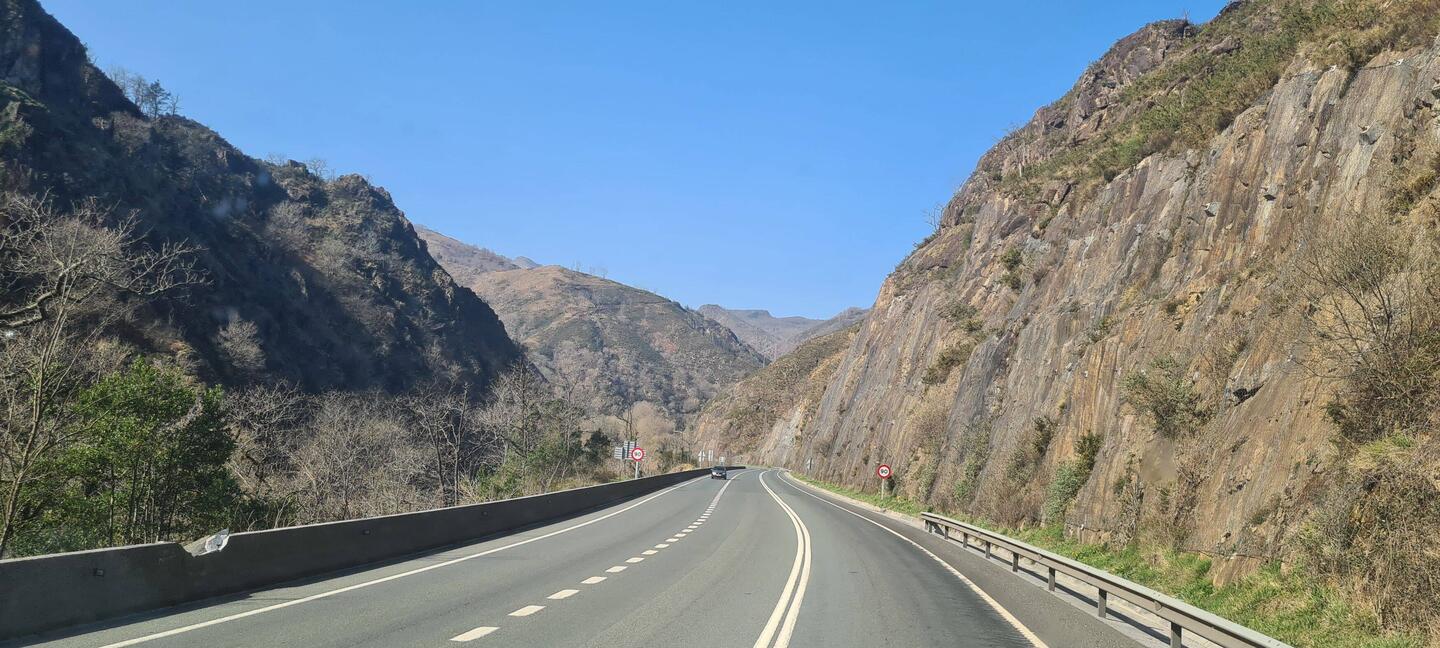 Am nächsten Morgen soll es weiter nach Finestras gehen, noch 15km. Die Offroadpiste endet schlagartig, ein Stück fahren wir normale Straße. Bei der nächsten Abbiegung steht dann plötzlich ein Verbotsschild. Nur Fahrzeuge bis 3,5t... und nun? Rob sucht nach Möglichkeiten, zu dem anderen Weg zu kommen. Nach einem Umweg geht es dann auf die richtige Offroadpiste, die etwas gemächlicher aber nicht weniger abenteuerlich ist. Es geht an einem Bach entlang, über eine schmale Brücke, bei der ich lieber vorlaufe, vorbei an Wanderern, an steilen Hängen entlang und ab und zu liegen einige Felsbrocken auf dem Weg. Am Ziel sind wir dann überwältigt von dem Ausblick.