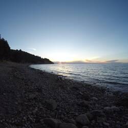 We headed out to the stony beach that surrounded the lake to watch the sunset in the distance, whilst listening to the tiny waves lapping on the shore. The sun fell just behind the mountain tops, which we could just make out at the opposite side of the huge lake. The few whispy clouds in the sky made it look even better and the red of the sun, just before it disappeared, was so intense. Such a lovely way to spend the afternoon!