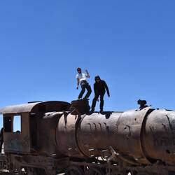 The rusting colours of the old skeletal trains contrasted so well with the marks of graffiti that adorned them and the surrounding yellow desert sand . It was a great photo opportunity, with so many different shapes and patterns to be found amongst the wreckages. It was also a great playground and we had a lot of fun clambering over the trains and leaping between the carriage roofs like we were in a bond movie. Turns out tetanus shots do come in handy ey! It was really good fun and I reckon we could definitely have stayed there longer had we had the time.