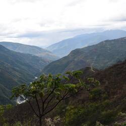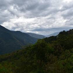 Eventually, I caught up with the rest of the gang who had come to a stop under a shelter for some lunch. We were greeted by chickens and a young girl who liked to climb trees and asked if we wanted some home made honey. We were told they sell juice in the right season which might have gone down better. We had some nice sandwiches and a drink and enjoyed the break and chance to take more photos. We were two thirds of the way down now and the view had opened up a lot more, so that you could see the river and jungle at the bottom, making its way through the valley.
