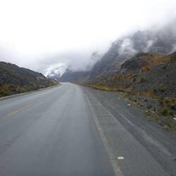 Every now and then you found yourself crouching down and speeding past a slow moving truck using the road, which was quite fun if not a little scary. I saw an eagle or condor, absolutely huge, take off from the side and into the clouds which was incredible. It just disappeared into the silvery fog. The feeling when speeding past the trucks was awesome, but the cold...wow. It was freezing, and after stopping half way down this section we were all huffing and puffing on our hands to get some feeling back in them.