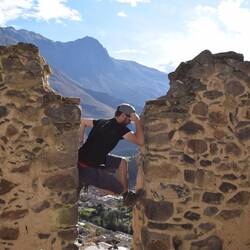 My pace was now two steps and rest, two steps and rest and it also involved some actual crawling whilst the boys stormed on ahead, but once again, I made it! We were up high again with yet another spectacular view of the main ruins and the mountain we had just trekked around. It is a bit strange just how flat ground is below that houses the small town and ruins, all encased in the many peaks that surround it. It feels quite secret and is no doubt what made it so appealing. A much needed rest at the top gave us time to soak it all in before heading back down with a bad case of jelly legs. Fingers crossed they hold out for tomorrow!