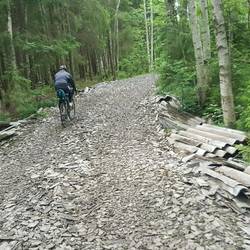 Dieser erste Tag schien uns schonwieder alles abzuverlangen. Die Strecke führte uns durch ein Waldstück, welches mit unterschiedlichsten Untergründen auf uns wartete. Schotter, Loch an Loch,Read more