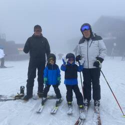 We couldn’t resist one more day on the mountain so that Xavier could ski with his buddy, Josh. We loved sharing a ride with Larry up to the top. It was pretty dead on the mountain due to the warmLeia mais