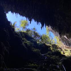 A steep climb to an incredible cave. Bud was a champ! And also bribed with M & Ms 😋