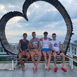1:30 p.m. - Went wanted to go to mango beach but we ended up at a random beach which wasn’t even a beach just big stones. Moreover there was a abandoned resort which was cool to explore. Afterwards we wanted to go to the mango viewpoint but we were not sure to drive there because the roads were very scary and steep. It wasn’t even a proper road just a path. Suddenly Troy and Toby appeared and convinced us to go there. I drove on the back of Toby’s scooter because he had the most experience. And it was worth it the weather wasn’t that good but a great place to lay in a hammock and just enjoy the view.