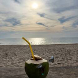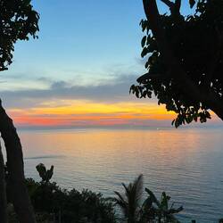 12 p.m. - After lunch I went exploring the beaches and made my way to the south. The first beach I checked out was the Nui beach. A smaller one but definitely beautiful, very calm and you have shade. Furthermore I saw many crabs also some with shell house’s. Later I found a café completely abroad somewhere in the wild. There was no proper road just a path and some signs. The offered homemade cake and coffee in their living room and garden. Really cozy vibe with all the plant’s and chickens outside. Between the name of their cat is Latte. I got a chocolate salted caramel cake which was really good. Afterwards I continued exploring and checked the Why not bar out because they advertised there new year’s party everywhere. Later I went to Nui Bay which was absolut gorgeous. Probably my favorite beach but there was a lot of rubbish and monkey’s. Those suckers steal bags and attack sometimes the people. I hate them. Afterwards I went to the Khlong Chak beach where I found a nice reggae bar. I drank a coconut and chilled a bit there. For sunset I wanted to go to Bamboo beach but it was disappointing when I arrived there so I went back to the reggae bar.