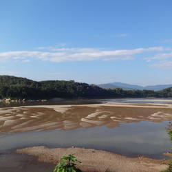 Après notre balade à dos d'éléphant, nous sommes partis en bateau nous baigner aux belles chutes de Tad Sae. Eau bleu turquoise, plusieurs cuvettes où se baigner.