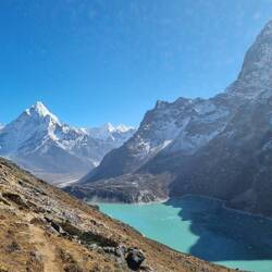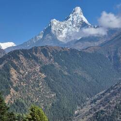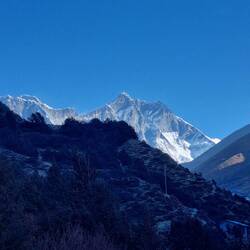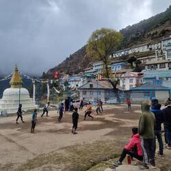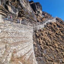 From Namche we were immediately onto the brutal steps out of the town, but we were so happy when we turned on to the flat route. A couple of hours of easy cruising, then the inevitable climbingLeia mais