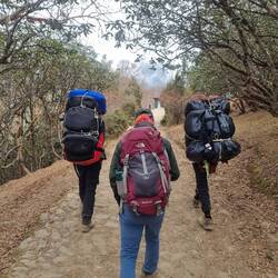Today's blog is named after one of our lead guide's favourite phrases - always followed by his famous laugh! Ram is lead guide, and we have Kamal (54!), Dambar and Naran (who also carries 20kg like aLeia mais
