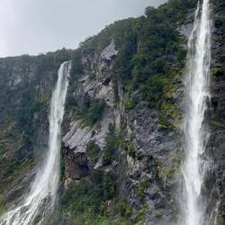 Emily Embo🇬🇧 Milford Sound On Tuesday, I went to Milford Sound. Now that I have Bongo back (that's another story), I can hit the road again. I intentionally booked Tuesday because it has been raining a lot in the past few days, and hopefully, the waterfalls are more spectacular. I also had a lot of respect for driving these roads alone again, but I managed it well! I always plan a lot of time for driving, so it happened that I stopped on the way to Milford Sound and looked at a waterfall that is very hyped. I was somewhat disappointed; you couldn't see much, and there were too many people there. I liked the walk through the rainforest to the waterfall better than the waterfall itself. I had mentally prepared myself to be disappointed by Milford Sound, especially since I've already seen Doubtful Sound and large crowds of tourists annoy me. But Milford Sound wasn't that bad; in terms of nature, it was like Doubtful Sound, and the rain made the waterfalls look even better (and chased away people from the top of the boat). However, you can already tell that it's a mass production; everyone is frantic, tour buses rushing, and almost no one is enjoying the moment; everyone has their camera on everything happening. I can partly understand it, but I'm glad I did Doubtful Sound; it was quieter, more relaxed, much fewer people, and you could just sit, look out, and enjoy the pleasant atmosphere. Nevertheless, I'm glad I did Milford; after all, I can't live in Te Anau for months and not have been there even once. Oh, and I saw these animals that day! In the parking lot: a Kea (mountain parrot) and a Weka (flightless bird). Milford Sound Tour: Fiordland Crested Penguin and New Zealand fur seals. See also: Lake Marian (posted at the same time as this)