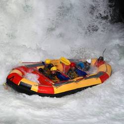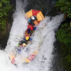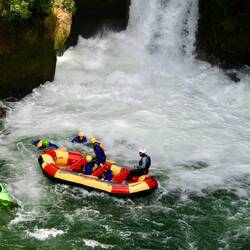 Emily EmboThere was also plenty of time for other fun; at one point, our guide let us out; whoever wanted could swim through a rapid. Of course, I'm in! He went ahead, anchored the raft, and blew a whistle. That was our starting signal, we swam into the rapid, got tossed around a bit, and then swam back to the raft. Our guide was ready to throw his rope behind us because the current was no joke. When we reached the end, we were glad to have all survived. The frontman from France also recorded a video with his GoPro; when he sends me the footage, I'll upload it separately again :)) Look forward to it! Until then, here are some pictures, yours Emily