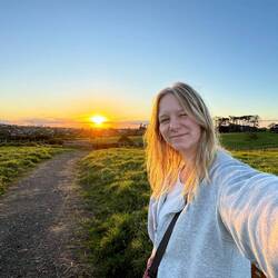 Emily Embo🇬🇧 Long time no see My dear ones, I'm checking in again after a long time. The past few weeks have been very stressful and mentally exhausting for me. You can read about how the sale of Bongo went in a separate blog that has already been uploaded! Here, I'll continue with the great things I experienced after Hobbiton! Next, I drove along the "Coromandel Peninsula" peninsula. Here, there are beautiful coastal regions and beaches, the trees are starting to change color, and I notice that autumn is really beginning now. The weather is also getting less comfortable, and I spend a rainy day in a thermal bath. Afterwards, I continue driving and visit a waterfall. I sleep right by the water and wake up early for my hike, finally after a long time! I hike to the Pinnacles in the Coromandel Forest Park, a 17 km hike with a 1000 m elevation gain. The weather wasn't bad, and it was so nice to go hiking again, even though it was very windy at the summit. It feels so good to have nothing else to do than to be in nature, it has something therapeutic. Now it's off to Auckland, but finding a parking spot here was very difficult, and I always had to drive at least an hour outside in the evenings to sleep somewhere. The parking spots were usually not good, the toilets were very far away, or I was right next to a highway. Luckily, I found a dog sitting job in Auckland for 10 days. When that started, I hadn't slept more than four hours for the last five nights. I think that weakened my immune system a bit, which is why I got a cold. But it's not bad because now I live in a house with a sweet dog! Let me introduce: Jeffrey, or Jeff. He is a Labrador Retriever and loves to play, water, and attention. Of course, I can offer him all of that, and we go on many little adventures. Jeff swims in the sea or in a puddle on a farm with many other dogs and cows around him. Jeff's family is on vacation in Australia, and I enjoy the luxury of a house in a suburb of Auckland.