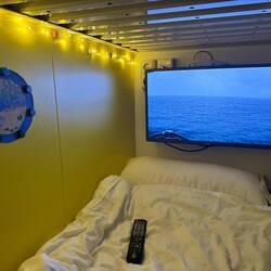 Zudem bin ich mit meiner Zimmerkollegin umgezogen, wir haben angefragt ob das möglich sei. Unsere vorherige Kabine war ganz vorne unten im Schiff und das war nicht nur eine Achterbahnfahrt bei Seegang sondern auch laut! Der Anker und die Düsen waren direkt bei uns, wenn das Schiff also um fünf Uhr morgens anlegte wurden wir wachgerüttelt und weiterschlafen war keine Option mehr (super, wenn man um drei ins Bett kommt). Nun sind wir weiter in der Mitte und hoffen darauf dass es ruhiger ist. Einen Vergleich hatten wir ja nie, aber Kolleginnen von uns kamen in die Kabine und sagten direkt dass es unnormal laut sei hier. Also alle Daumen gedrückt dass die Kabine ruhiger ist!!