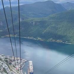 Trotzdem ist es schön, dass so viel los ist. Jeden Abend ist irgendwo eine Party und an Landtagen darf ich Norwegen erkunden. Bei vielen Attraktionen bekommen wir als Crew Rabatt, zum Beispiel bei der Seilbahn in Åndalsnes. Das haben eine Kollegin und ich uns nicht entgehen lassen und sind die knapp 700 Meter hochgefahren. Der Ausblick war wunderschön, und wir haben uns in einem Café noch ein warmes Getränk gegönnt, bevor es zurück an Bord ging. Dort stand unser schriftlicher Sicherheitstest an. Den habe ich bestanden, und jetzt kann ich mich ganz auf die Schule konzentrieren (außer ich schreibe während der Lernzeit wieder den Blog).