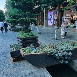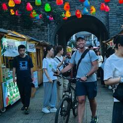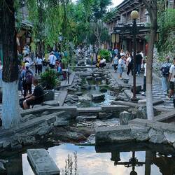 Entriamo nel centro storico, biciclette alla mano. Città molto bella, con tanti turisti, angoli suggestivi, con vista sulle montagne. Bellissima la piazza con le 5 pagode e la strada laterale con il fiumiciattolo costeggiato da giardinetti e negozi dove in cima troviamo le albicocche fosforescenti. Dopo una parata militaresca di ragazzini piuttosto inspiegabile, Elena si consola dalla stanchezza con uno shopping sfrenato in una delle migliori boutique di Dali. Finiti gli acquisti e fatte alcune foto con altri ciclisti locali (però loro seri), risaliamo in sella verso il lago.もっと詳しく