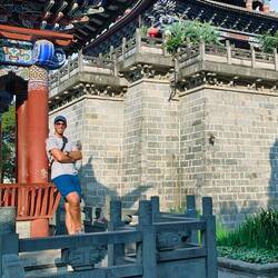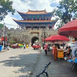 Arriviamo a Dali Old Town nel primo pomeriggio, ma decidiamo di proseguire verso le 3 pagode. Scelta non troppo felice perché la strada è tutta in salita, trafficata e sul più bello a Paolo si buca una ruota della bici mentre Elena cercava un ristorante panoramico inesistente. Sistemata la bici, dopo una complessa ricerca di un riparatore (tra gommisti e benzinai), mangiamo un succulento e veloce pollo fritto al KFC in cui vediamo la foto delle pagode dal lago. Paolo riesce a trovare la location della foto verso cui ci dirigiamo. Paghiamo l'intero biglietto del parco solo per fare la foto delle Pagode, la location è molto suggestiva!! Ma Dali ci aspetta!!! Così torniamo indietro per la visita di Dali.