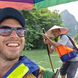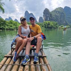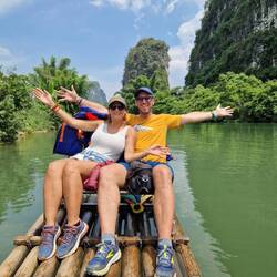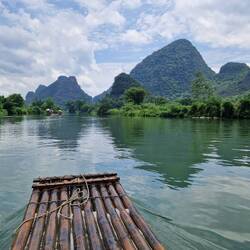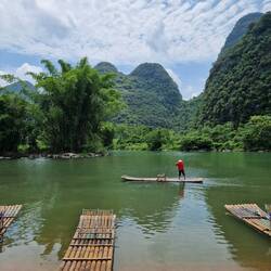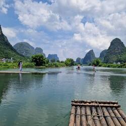 Dopo aver preso lo scooter ci dirigiamo subito verso il fiume Yulong per provare esperienza della navigazione sulle tipiche barche di bamboo.