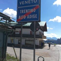 Ritorno verso Cortina con giro largo. Check pressione gomme al benzinaio e tappino perso da Alex con grandissimo rammarico. 😂