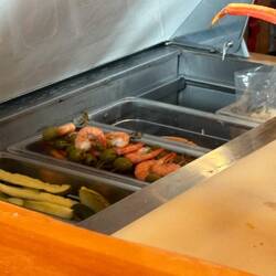 The best Bloody Mary ever! Snow crab leg, shrimp, regular accoutrements, and a pile of crab on top! The price reflected the decadence, but well worth it!