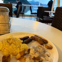 Time to say goodbye to the Jade... last breakfast in the Garden Cafe before facing the melee getting off the ship.