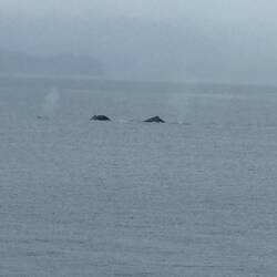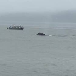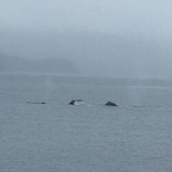 Just walking from the gondola over to the shops and restaurants and there are whales right off shore!