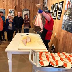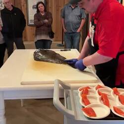 We took a little class about cooking fish. We really wanted to get to learn to filet a fish but we only got to watch him do it. The class was still interesting and we learned more and the food system in a place as remote as Hoonah that only gets a ship in on Thursday each week. We also learned about how the whole cruise port and all of the restaurants and shops there are owned and run by the Tlingit tribe.Читать далее