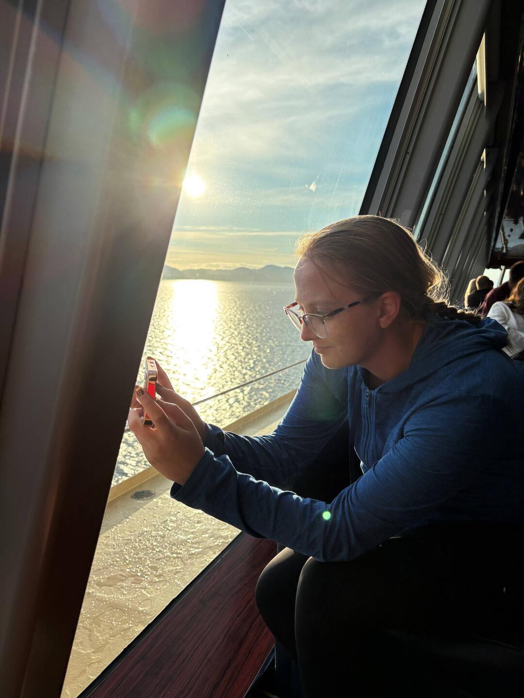 As the ship was turning, we got smart and staked out a table on the back deck and just had to wait for the right turn for great shots.