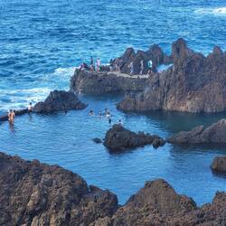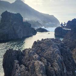 Nach dem gestrigen Tag, ner unruhigen Nacht nun doch im nächsten Ort der Reise in Porto Moniz angekommen. Der Bus fuhr ca 70 Minuten von Caletha über Serpentinen hoch und runter hierher. Hui war dasLæs mere