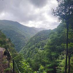 Mit dem Taxi zum Ausgangspunkt. Einer kleinen Seilbahnstation mit zwei Gondeln die 600 Meter für 5 Euro in die Tiefe schwebte. Unten wurde mal viel Anbau mit Gemüse betrieben, was aber überwiegendLæs mere