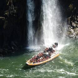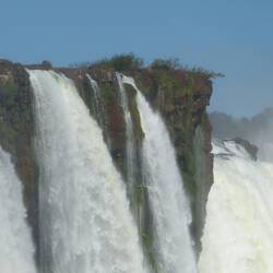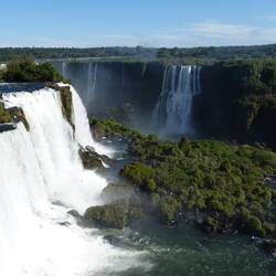 Der friedliche Rio Iguazú, der durch den Dschungel zwischen Argentinien und Brasilien fließt, stürzt über eine Basaltklippe – ein spektakuläres Schauspiel aus Lärm und Gewalt, dasBaca selengkapnya