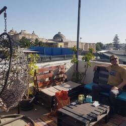 The climate here is pleasant at 21°C, and we enjoy the sun on our rooftop terrace high above the city.Lue lisää