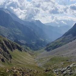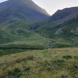 Am nächsten Morgen stieg ich weiter bergan bis zum Passo de los Caballos und machte von dort noch einen Abstecher zum See Ibón de Urdiceto. Nach dem Abstieg in Richtung Refugio de Viadós, nahm ich noch ein Bad im Rio Cinqueta und stieg anschließend erneut auf ca. 2100 m Höhe bis zur Pleta d'Añes Cruces hinauf. Hier, wo sich drei tosende Gebirgsbäche vereinigen, baute ich mein Zelt auf und verbrachte eine gute Nacht.