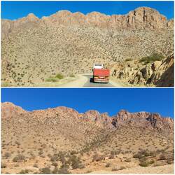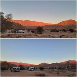Frühstück mit Sonnenaufgang und roten Felsen weit oberhalb Igherm. Beeindruckende Rundsicht vom hohen Atlas bis zu den letzten Gipfeln vor der Sahara.