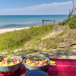 Für unsere Verhältnisse zügig fahren wir durch den einsamen Westen von Saaremaa. Einsame RMK-Plätze mit traumhafter Meersicht und ein neu angelegter sympathischer Hafen-Stellplatz bei Kihelkonna, diesmal nur für eine kurze Rast.