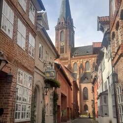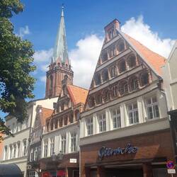Ausgeruht dann ein Nachmittagsbummel (inklusive Eisdiele) im Hansestädtchen Lüneburg. Ist es der Kontrast zum Baltikum, der unsere Wahrnehmung verstärkt? Wir fühlen uns jedenfalls auf Anhieb sehr wohl, sind entzückt von den vielen schmucken Gassen, den eigenwillig verspielten Fassaden der niederdeutschen Backsteingotik und dem alten Viertel "in der Senkung". Die alte Salz- und Handelsstadt hat Charme.