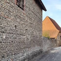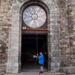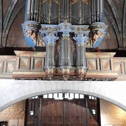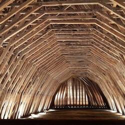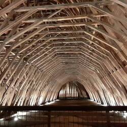 Dank Regenwetter haben wir Gelegenheit, den aussergewöhnlichen Dachstuhl der Kirche von Monein zu besichtigen: Zimmermanns-Handwerk in beeindruckender Virtuosität.