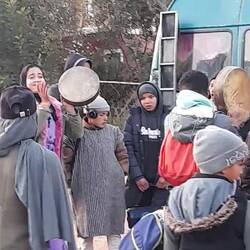 Der sehr authentische, lebendige und einladende Ort bietet sich uns dennoch zur Übernachtung an. Plötzlich sind wir wieder mittendrin: auf dem Parkplatz nebenan spielen zwölf junge Männer eifrig Fußball. Und kurz nach Sonnenuntergang hält ein alter Ford-Transit mit quietschenden Bremsen direkt hinter uns: bestimmt etwa dreissig Kinder und Jugendliche entspringen diesem Gefährt, stehen im Kreis und trommeln, singen und tanzen erneut. Da ist sie also wieder, die Freude über den ersten Schnee.