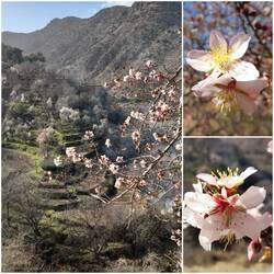 Nach diesem grandiosen Schnee-Festival ziehen wir auf fast wieder leerer Strasse talabwärts und erfreuen uns an der schnell grünenden Landschaft, an den ersten blühenden Mandelbäumen und an den wasserführenden Bächen.