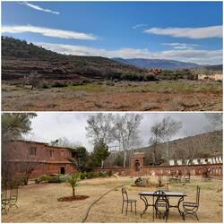 Weiter geht's durch immer noch sehr karge Hochebenen, bis die Strasse dann plötzlich runter sticht nach Taliouine. Dieser Ort im ersten fruchtbaren Talabschnitt auf dem Weg zur Sous-Ebene ist für den Safrananbau bekannt. Was liegt also näher, als hier Mittagsrast zu halten und ein Safrangericht zu genießen. Der Seniorchef in der Auberge Askanoune kocht vorzüglich und reichlich, klare Empfehlung (zumal das Menü zu 80 Dirham wirklich preiswert ist).