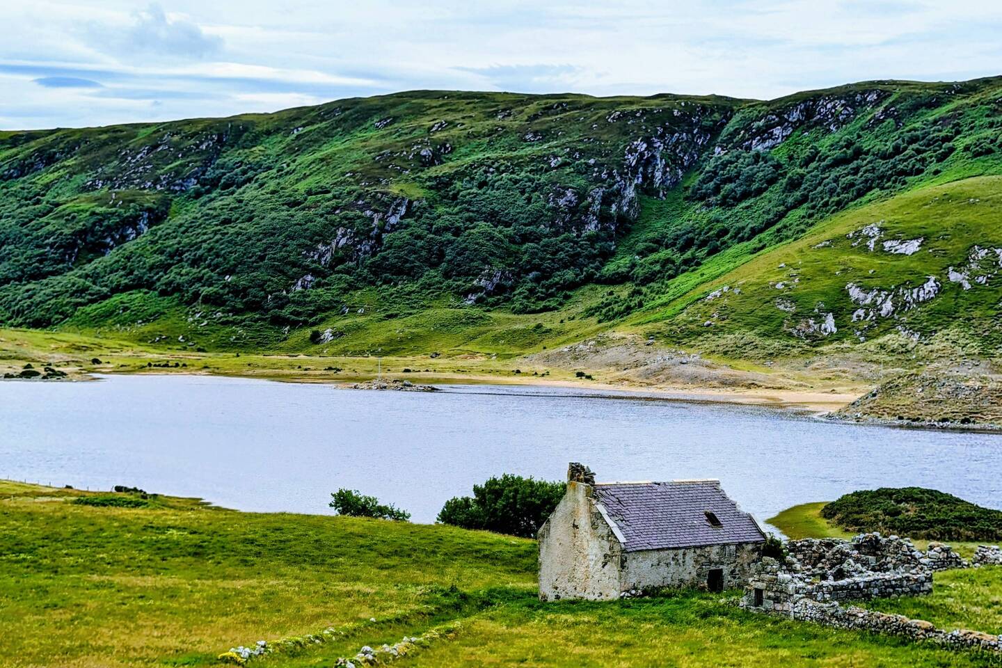 A spectacular peninsula in Loch Eriboll with views to Ard Neakie Lime Kilns.